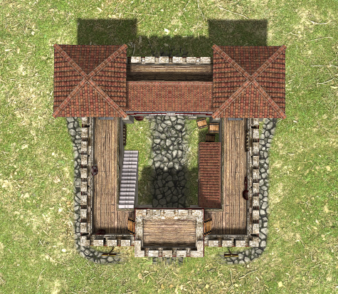Yeah, I think the negative space in the courtyard in between the cobblestone and the walls would be dirt. Perhaps we can layer decals?