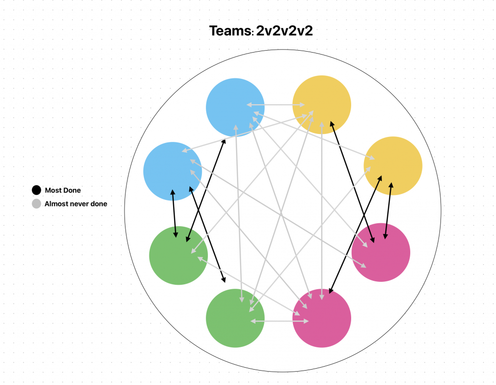 Yep, that diagram shows what happens in circle placement (I was doing some diagrams a time ago to visualise dynamics.) As I mentioned in another post, I think this is similar to football formations. In a circle, players on the borders most of the time face early pressure and frequent 2v1 situations, at least in the 1111 vs 2222 setup. But with random groups, river or stronghold dynamics are different. That's why I avoid playing circle placement, or at least I make variations like 2v2v2v2 or FFA. Almost always, they send me to the border; most players want to be in the pocket, because the border in circle placement is like that football position that receives more tackles. The game has so much possibilities worth of being explored