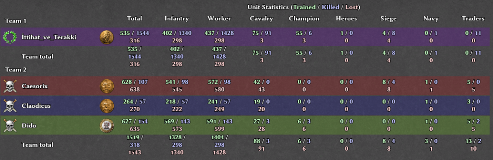 1v2 on very hard isn’t that difficult, I’ve done it many times. I’m sure @Seleucids can push it even further. (There was a YouTube video of her where she played 1v7 on very hard but I don’t know that game details enough to fully understand what was going on and the video quality wasn’t good enough to catch the info. Also it was previous versions of the game. The graphics were also terrible because of the mod she was using, it made everything look like an x-ray.) Today I did 1v2 very hard and it can be seen how effortless it is. I'm not even playin agressive or doing weird tricks. I could have played more harder and finished the game faster but I preferred a more relaxed run. With better preparation and ideas it's possible to do 1v3 or more. commands.txt metadata.json