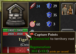 My absolute focus on Gitea is to get what I would think of features for the game to feel great. We should get formations actually useful, add some effects like knockbacks, charges, and other discrete unit abilities. It's almost sad to have a game with elephants that anything can get in it's way, when it actually should be the battle line breaker for example. I have my own preferences about how tooltips should be, I like them to be here for you to get any piece of info about how the game works a player would want to know. Each element can provide important insights for decision making. For example here is a tooltip I like for building capture bar: I don't count neither how many tooltips (there are literally hundreds) that I reworked over... multiple times... I don't want to exhaust scarce reviewer time and own on it at the moment, because it's often very subjective as for what's best, so easily a time sink. And the UI can anyway be modded anyway, like you do in DE too. So for the time being that would be a pass for me.