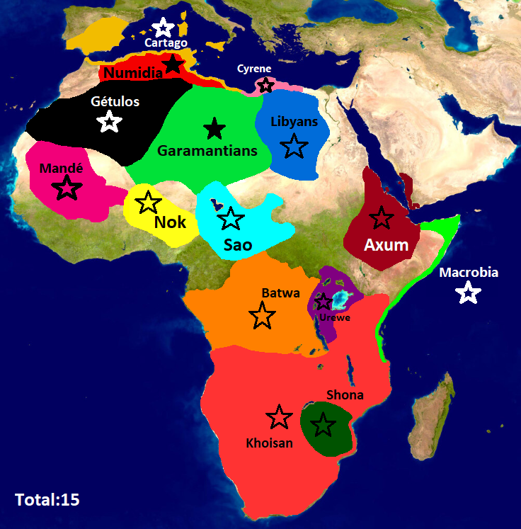 Buenos días ,tardes o noches; -Así se ven en el juego las facciones africanas; (Sería de gran ayuda que siguieran este foro y compartieran referencias, información, sugerencias ,críticas,ideas etc...) (Só (Solo faltan los Cartagineses ya que aún no tienen la actualización,en unos días subiré las fotos) (Los Yoruba y Mauritania serán incluidos en la segunda versión del mod) Axum Batwa (Nómada) Cirene Garamantes Gétulos/Gaetuli (Nómada) Khoisán(Nómada) Libios(Nómada) Macrobia Mandé-Shoninké Nok Númidas Sao Shona Urewe(Nómada) Axum Batwa (Nómada) Cirene Garamantes Gétulos/Gaetuli (Nómada) Khoisán(Nómada) Libios(Nómada) Macrobia Mandé-Shoninké Nok Númidas Sao Shona Urewe(Nómada) -¿Qué opinan? Disculpen las molestias*