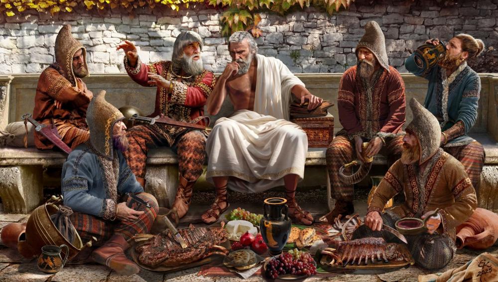 I've been working on the Scythians a lot lately for DE (and eventual inclusion on EA. R29?). Ported over a few assets from Endovelico. Made some actor and mesh improvements, rethought a few things, etc. An updated direction for the Market. This is just a mockup, but easily accomplished: Their "Academy" (Imperial Academy/Syssiton/Gymnaseion) structure, the Royal Yurt. Trains champions and heroes: Stable, by @Duileoga: Corral: Ovoo: Thoughts: Google Translate now has the Ossetian language, which is the closest living language to Ancient Scythian. Let's leverage Ossetian for SpecificNaming. Nomadism Buildings auto-build, but have -50% health and capture points. While they are easier to destroy or capture, they also don't capture decay in neutral territory (they don't require territory roots). Receive special Ox Carts which are mobile resource dropsites (like the German ones) but can also transform into Houses and Storehouses at-will (and back) in own/allied/neutral territory. The Civic Center +25% territory influence radius (a great bonus), but its weight is -50% less than normal (their borders push much less against enemy borders than other civs do). Scythian Commoners (their Citizen-Civilians) have a range attack (use bows instead of knives) and an attack bonus vs. fauna. These traits can go to any nomadic civilization we may include, such as Xiongnu or Huns. Pastoralism Corral technologies research instantly. Receive a special Corral technology: Extensive Husbandry (boosts ranching) Receive a special Corral technology: Falconry (boosts Cavalry vision range and hunting) Raiders and Plunderers Scythian Maiden Huntresses +500% (TBD) loot while killing enemy units or destroying enemy buildings. These units are glass cannons, but if used right can more than pay for themselves in loot gained before they are killed. Scythian Buildings and Units only give half-loot when killed. Winds of the Steppe A team bonus for Cavalry or Stables or both. The cult of Scythian Ares The Scythian Ovoos are their primary territory pushers. No other structures besides Civic Centers and the Fortress (see below) have territory radius effects. The Ovoo also has an aura that boosts soldier attacks ("Sword of Ares") and Priestess stats ("Cult of Ares"). Scythian Priestesses can also pray here to get resources (TBD). Ovoos cost stone and metal and are very very tough and uncapturable (must be destroyed). Eventually we can create a new model which is the wooden platform with the sword at the top as described in the Histories. Maybe we can change the cost to Wood and Metal then, or give the Scythians the option to build either the stone ovoo or the wooden platform. Fortress The Scythians do receive a stone Fortress structure, but it's treated like a special building in that only 1 may be built. It becomes available in Town Phase. It has a territory radius, but functions more like a hard point for defense or offensive push, more typical of a redoubt. Fortress units (Champions and Heroes) are moved to the Royal Yurt (see image above, information below) as well as standard Fortress techs. The Fortress does get to train the Scythian Battering Ram in Town Phase and research the ram's relevant siege technologies. Royal Yurt Their "Academy" type structure, similar to the Spartan Syssition, the Han Imperial Academy, and or the Athenian Gymnasium in that it trains Champions and Heroes and researches relevant techs. It's also given the standard Fortress techs, such as Espionage and Will to Fight. Can invent a Special Tech for here. Maybe "Cavalry Tradition" or a special rank promotion tech applicable only to Cavalry. Technologies A special Forge technology: Goldsmithing (a boost to Market/Trading). The only Forge tech in the game with a specific economic effect. A special Forge technology: Composite Bows (boosts infantry and cavalry archers specifically). Replaces the final melee attack tech. They receive Archery Tradition like the Persians. Most technologies, except those in the Civic Center, take 25% longer to research or cost 20% more (TBD). I think something like I outlined (the exact values of things open for balance and design) keeps the core territory gameplay of 0 A.D., but adds enough distinctive features to make them feel a lot different than the other more "sedentary" civilizations. For DE specifically, I'll differentiate them even more with Cult Statues, Scouts, Cavalry are builders etc. But for EA I think what I've outlined is more than enough. What think?