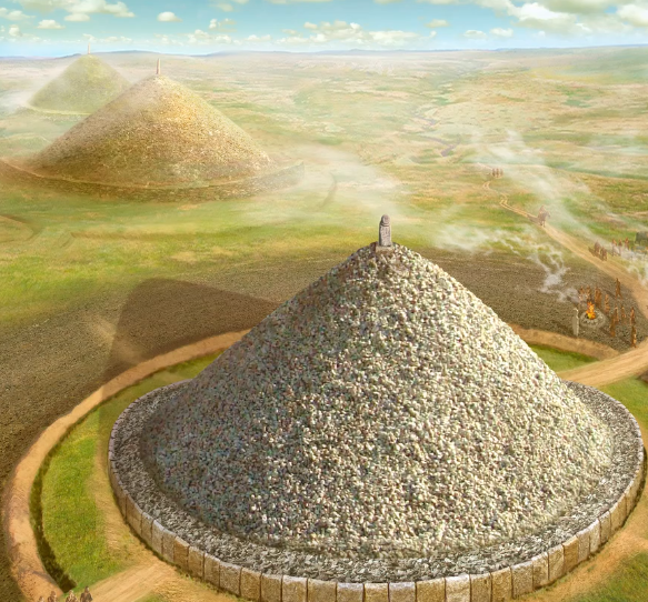 A kurgan is a tomb. I understand your reasoning, but it's not supported by evidence. It was very common for tombs and burial sites to be looted or damaged a few generations after their construction. These kinds of monuments weren't venerated by the whole of society; it was a form of ancestor worship. It is, in a way, an expression of power. If the ruling clan changed, the monuments associated with the previous clan weren't maintained. I understand the criticisms regarding the aesthetic aspects; they are valid. However, any historical or sociological interpretation must be supported by facts and observations. If we want to add objects and decorations, there has to be a meaning to it.